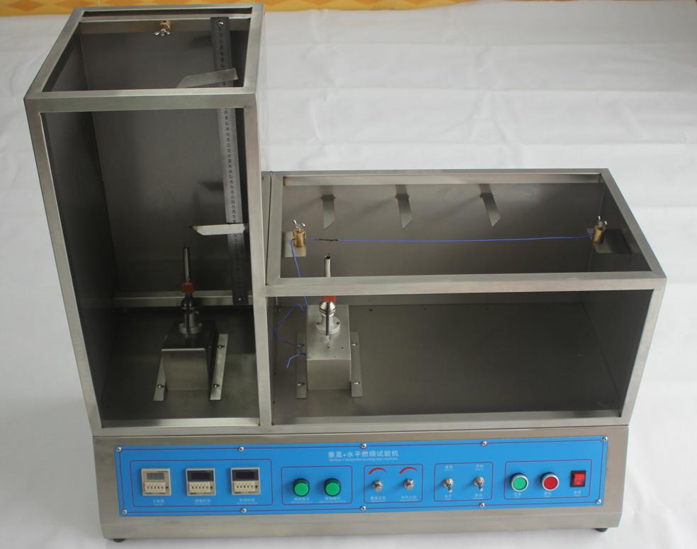 垂直+水平燃燒試驗機適用于各種電線電纜絕緣被覆材料、印刷電路板材料,IC絕緣體等有機材料之耐燃燒性試驗.試驗時,將試件至于火焰頂端,燃燒15秒,熄滅15秒,重復5次后檢查試件被焚情形,可設定燃燒,熄滅時間及重復次數,并可自動操作。適用于UL1581.UL13.UL444.UL1655之VW-1以及CSA之FT-1。