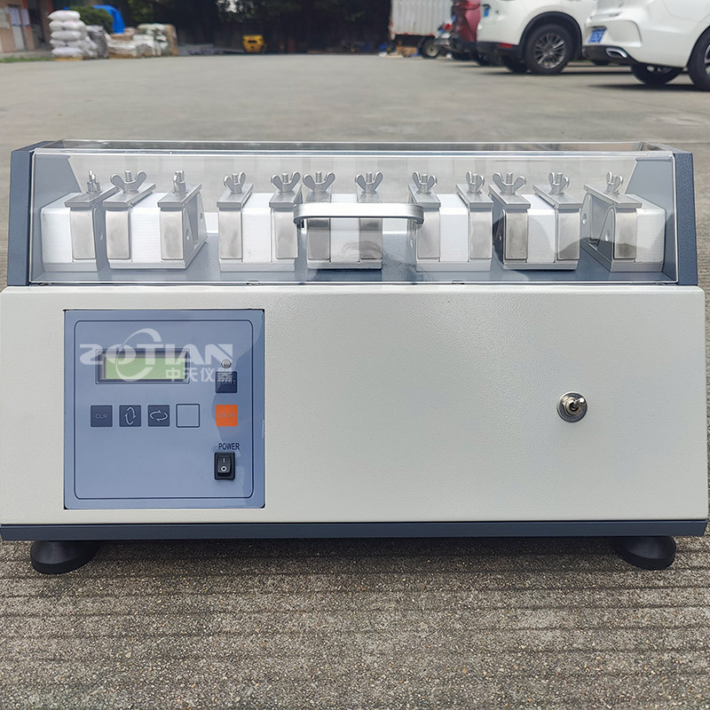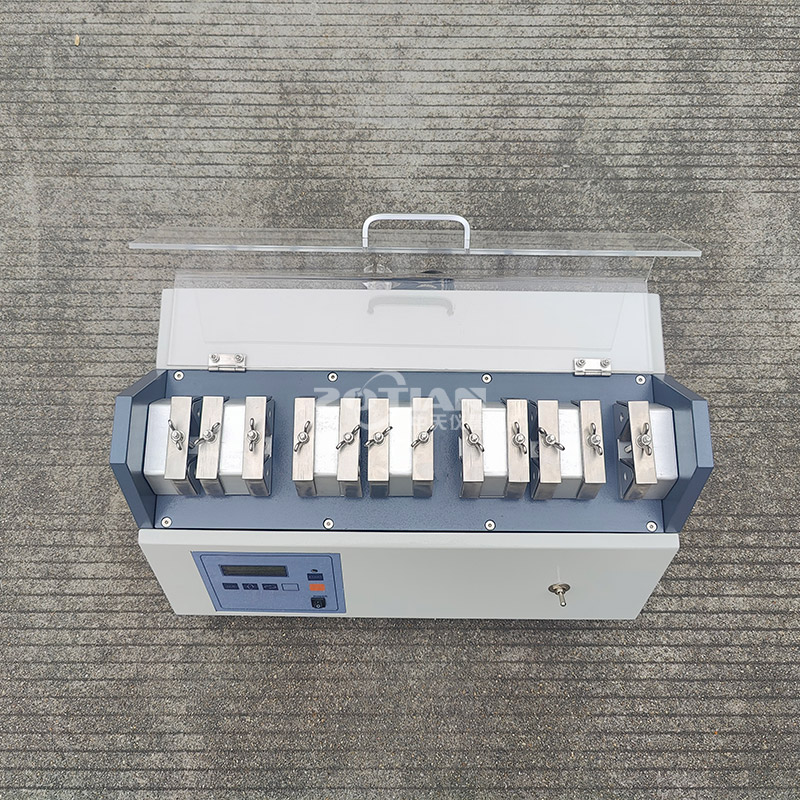 本機模擬鞋子于行走過程中,鞋面皮不同部位會受到如拉伸、擠壓、曲折等的受力,造成鞋子材料產生刮痕、皺紋或受損.本機即在模擬此一試驗,作為鞋面材料的品質改善或選購的參考,具有斷電記憶功能。